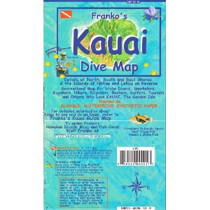 Kauai Dive map (Hawaii)ISBN: 9781601901118Author: Franko Maps Recreational map for scuba divers, snorkelers, kayakers, hikers, bicyclists, boaters, surfers, tourists, and others who love Kauai. Printed on waterproof, tear-resistant, permanently folded paper. Side one shows a map of Kauai. Legend includes principal/secondary roads, dirts roads, trails, points of interest, scuba sites, snorkel sites, kayaking spots. Side two shows a detail of the north shore, south shore, east shore and Lehua. |