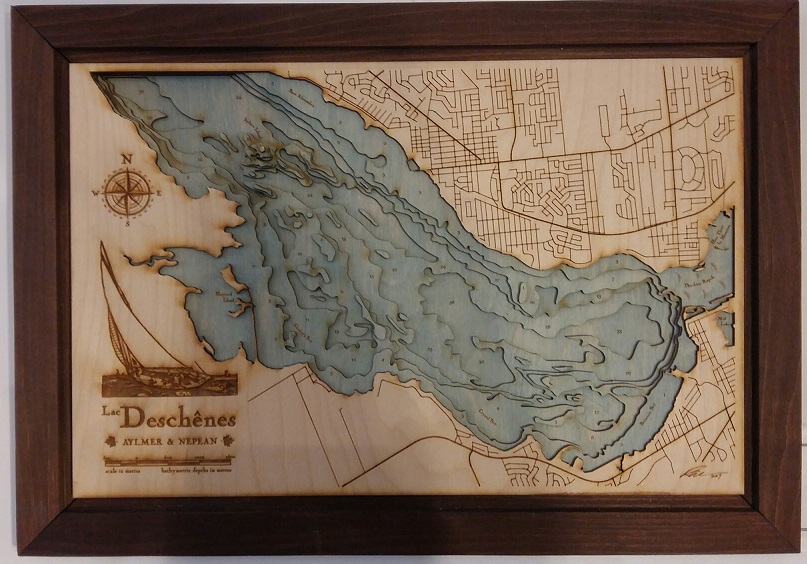 Lac Deschenes - Ottawa River LasercutISBN: LACDESCHENESAuthor: Ravi Mehta Lac Deschenes - Ottawa River Lasercut WATER DEPTHS SHOWN ON A WOOD FRAMED LASERCUT 20X14 INCH |